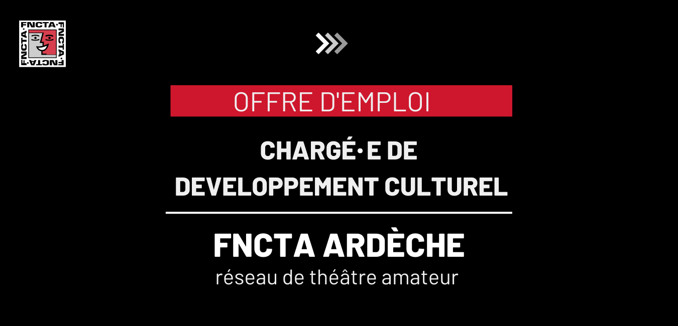 OFFRE D’EMPLOI Le Comité Ardèche de la FNCTA Recrute ! Présentation : Le Comité Ardèche de la Fédération Nationale des Compagnies de Théâtre Amateur est une association qui œuvre depuis 1999 en Ardèche. Elle a…