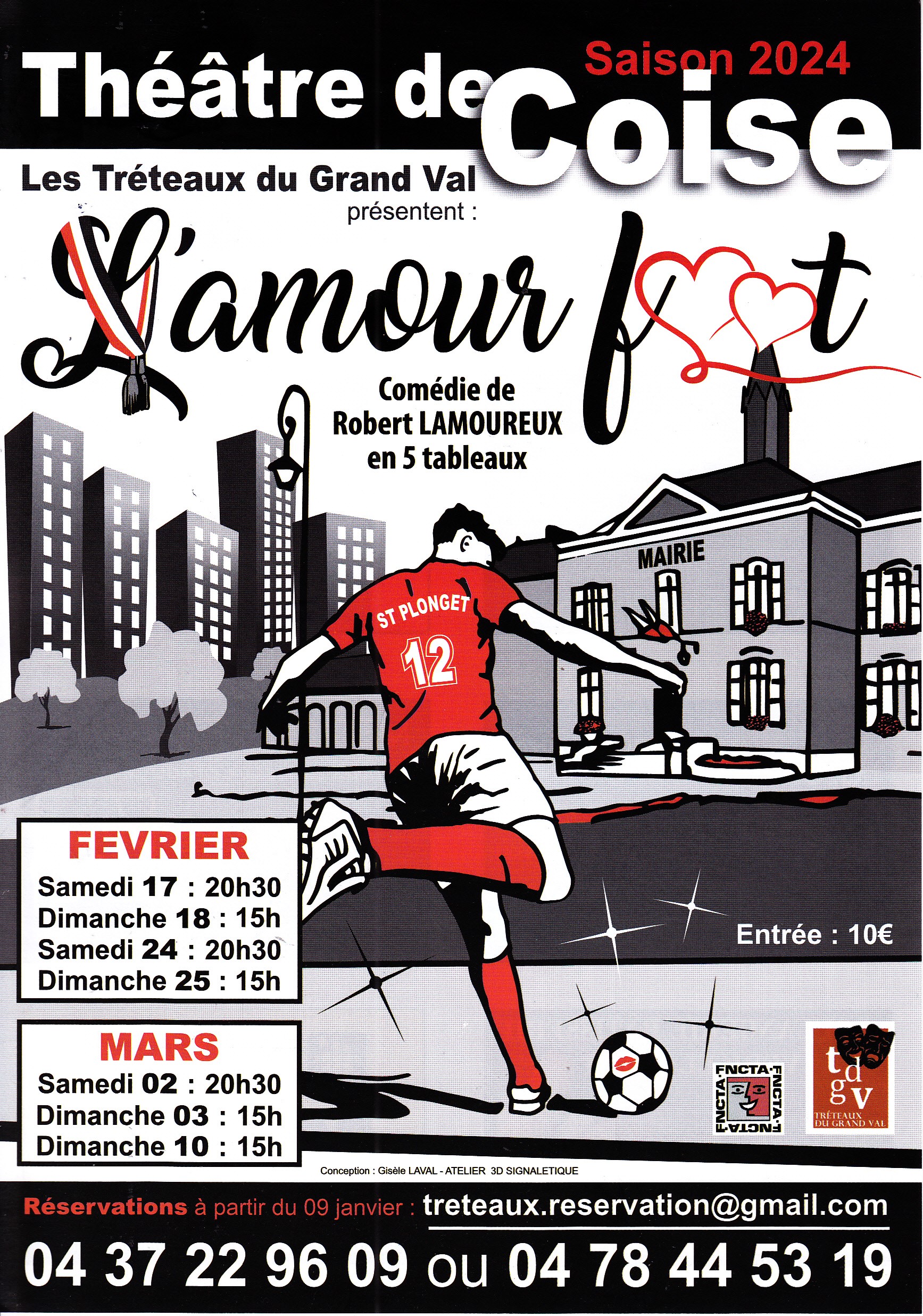 A partir du 9 janvier, il est possible de réserver ses places pour la Comédie « L’Amour Foot » de Robert Lamoureux montée par la troupe des Tréteaux du Grand Val.