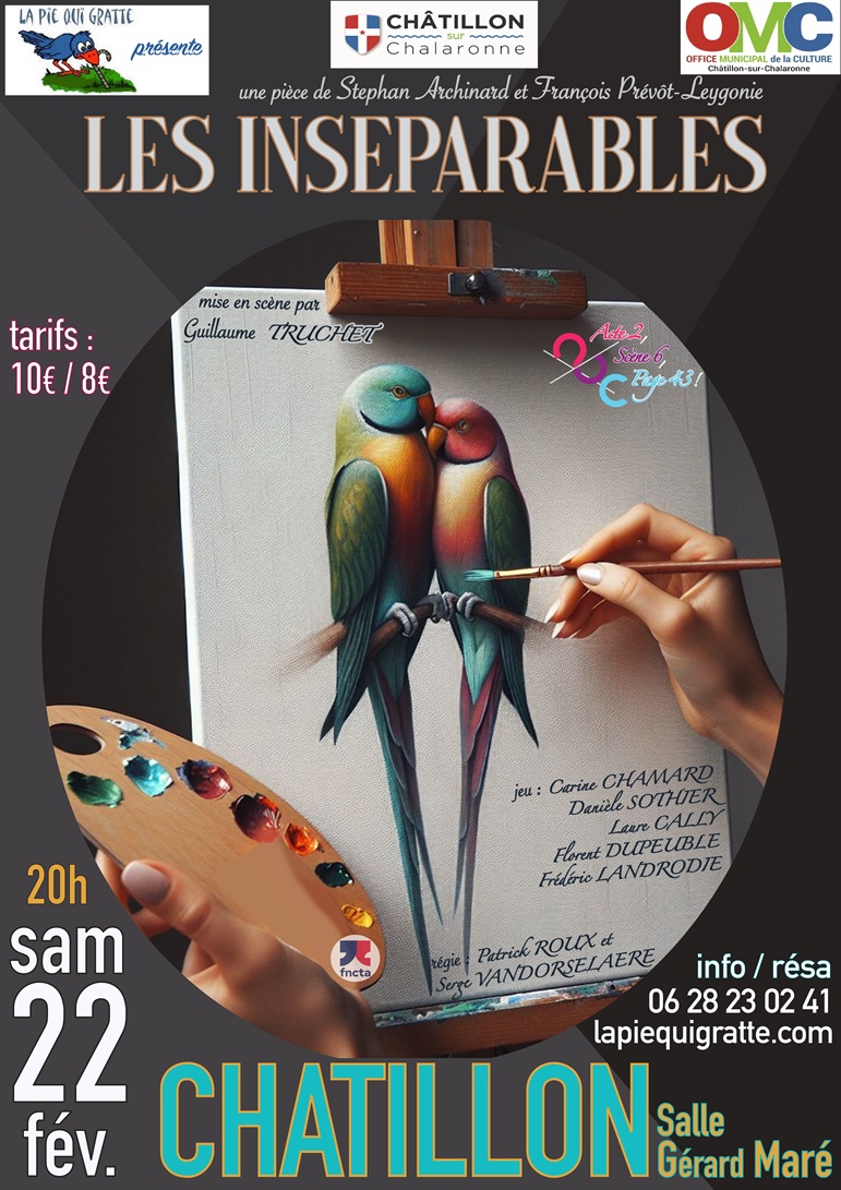La Pie Qui Gratte de Chatillon sur Chalaronne accueille la troupe Acte 2 Scène 6 Page 43 pour sa dernière pièce “Les Inséparables” de Stéphan Archinard et François Prévôt-Leygonie.