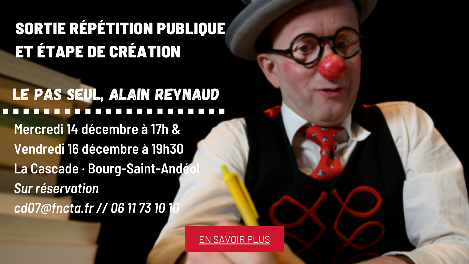 Alain Reynaud (Les Nouveaux Nez & Cie / La Cascade ) nous ouvre les portes de la répétition de son prochain spectacle Le Pas Seul, une création qui sera présentée en 2023.