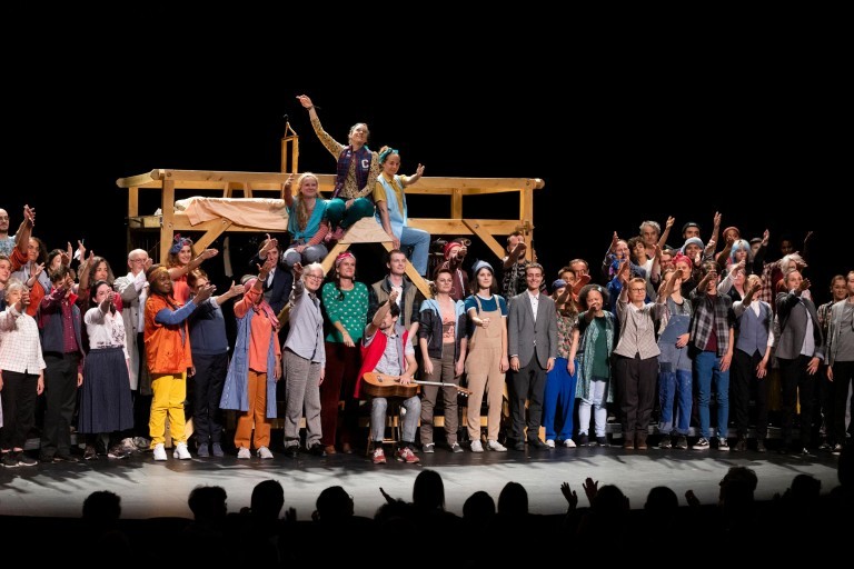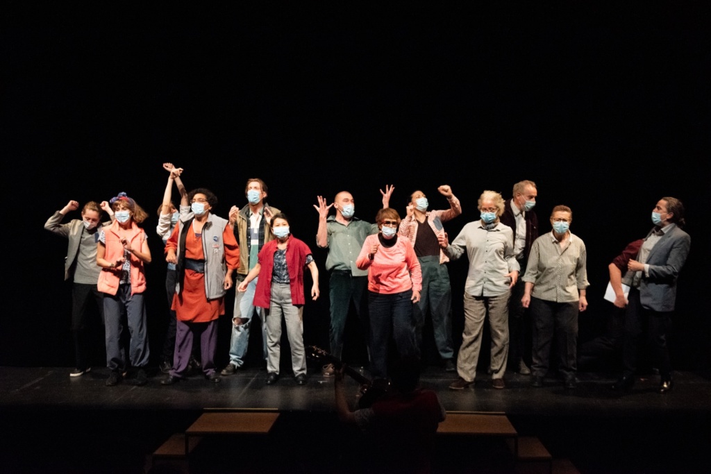 J’ai l’impression d’avoir appris le métier d’interprète en jouant cette pièce et en jouant une autre, que nous avons créée quasiment au même moment. Ce qui fait que par exemple, on a fait un gros projet avec l’opéra de Lyon sur la révolte des Canuts pour lequel on a mobilisé une soixantaine d’amateurs, ils avaient tous des rôles, ce n’était pas de la figuration. Et parmi ces gens, il y a des personnes qui étaient vraiment des amateurs au sens fort du terme, qui ont la pratique du théâtre, qui ont développé des compétences, qui font ça depuis des années dans les troupes amateures… Et puis des hommes et des femmes qui n’étaient jamais montés sur une scène, qui n’avaient même jamais rêvé de le faire, qu’on avait trouvé par des associations… Et en fait, je me rendais compte que la manière particulière dont j’étais arrivée dans le métier m’aidait beaucoup pour les idées, parce que je me souvenais de moi ce que je ressentais la première fois que j’étais sur scène, à quel point ça me terrorisait. Et en même temps, je savais que ça se contourne, je pouvais leur dire: “vous allez voir, c’est comme le vertige, ça passe vite”. Après mes camarades qui sont vraiment des comédiens professionnels qui étaient avec moi sur ce projet, étaient aussi très très bons pour les guider avec leurs outils à eux bien sûr et c’était complémentaire.