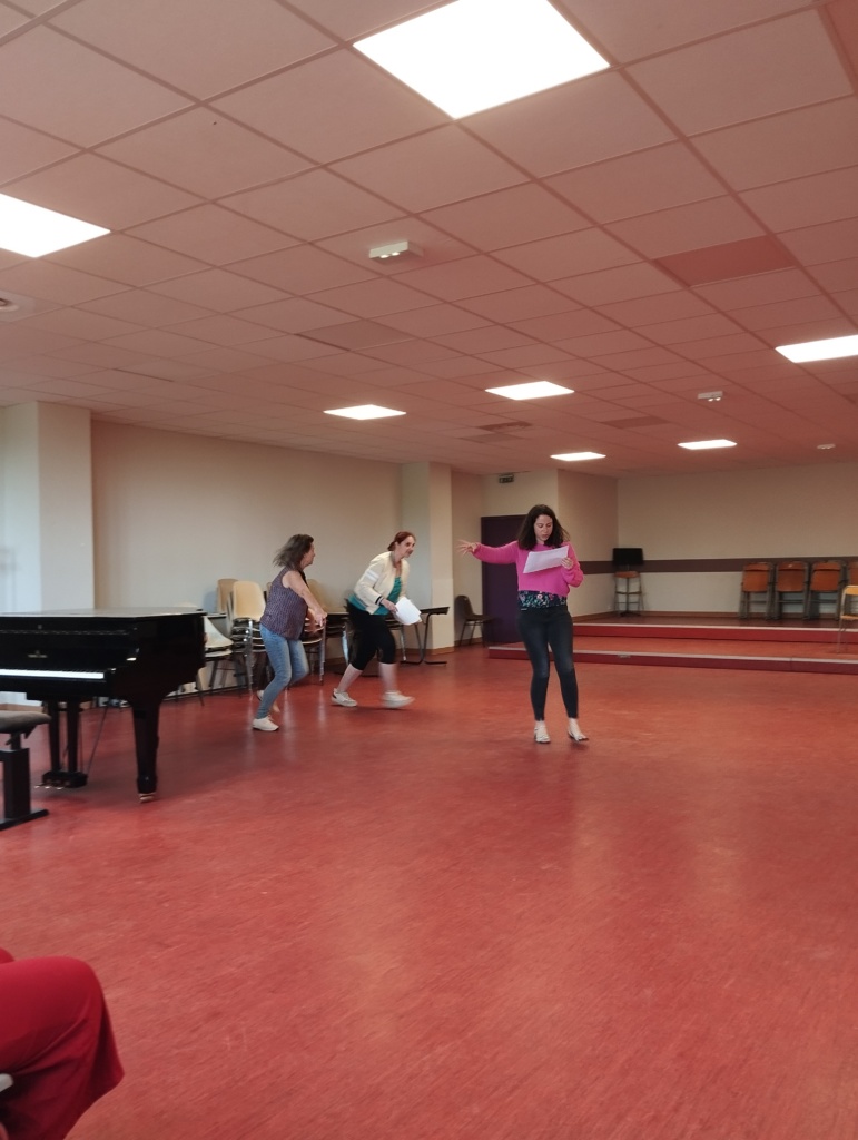 Après une pause repas bien méritée, elles sont montées sur la scène d’abord avec des textes communs et ensuite avec des textes de Prévert qu’elles ont choisis. Après s’être posée les questions: où suis-je, qui suis-je, à qui je m’adresse ? Elles ont amorcé un travail d’intention, de situation et de mise en scène. Et quel beau travail ! Grâce à la bienveillance dont elles ont su faire preuve et des critiques constructives, elles ont pu toucher du doigt de vraies pistes à explorer.