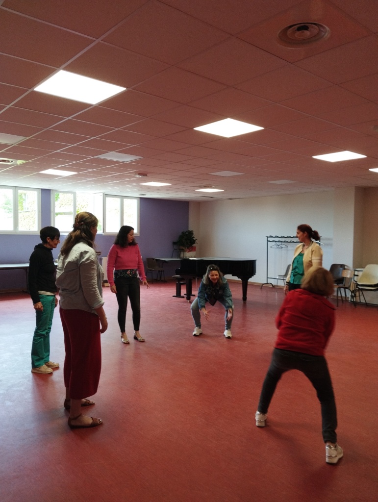La journée a débuté par des échauffements de tout le corps, pour gagner en puissance, la clé c’est d’être bien “installé” dans son corps. Alors les participantes ont pris le temps de réveiller leur corps, leurs membres, les muscles, leurs articulations. Et de faire connaissance aussi au travers de divers exercices.