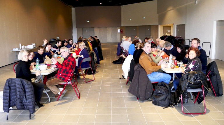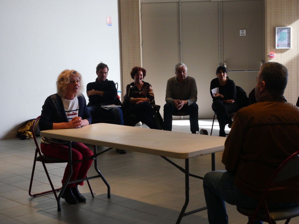 Vers 13h15 le déjeuner (repas tiré du sac) s’est déroulé dans la convivialité et la bonne humeur. Les participants ont échangé sur leurs pratiques, noué des liens, échangé des adresses… Ensuite, nous avons assisté à quelques bandes annonces de spectacles et d’autres représentants de troupes ont annoncé leurs spectacles et mis à disposition des tracts. Il y a véritablement un renouveau des troupes du Rhône.