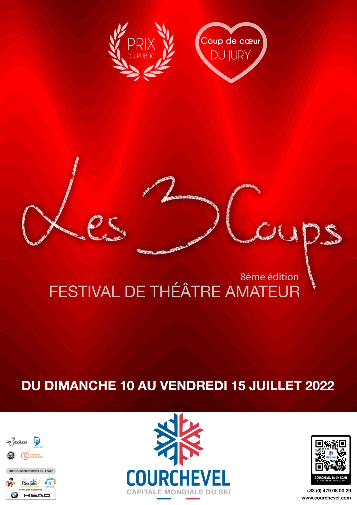 Du 10 au 15 juillet, aura lieu la 8e édition du festival Les 3 Coups, à Courchevel.  Ce festival de théâtre amateur de Haute-Savoie, réunit 6 spectacles de troupes qui vont concourir pour 2 prix…