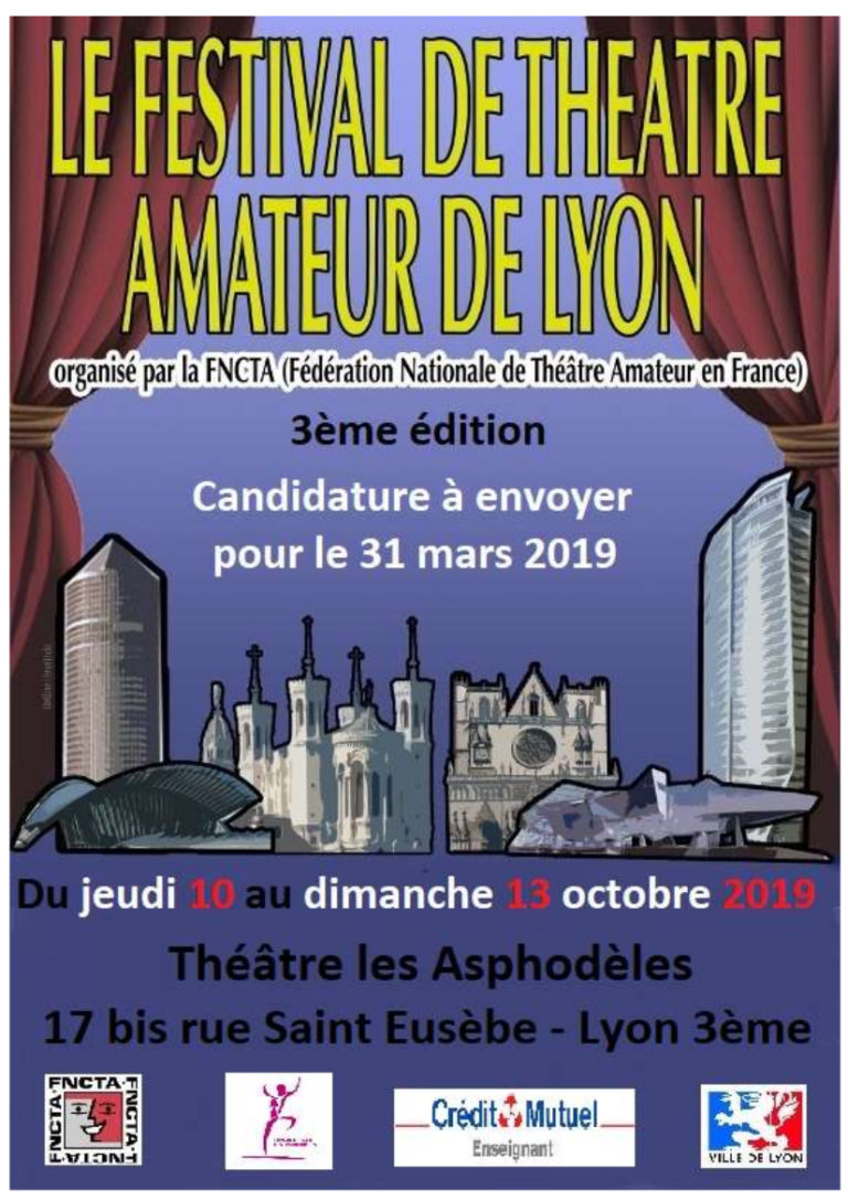 Cette troisième édition se déroulera en partenariat avec le Théâtre des Asphodèles (Lyon 3ème) et sera organisé avec le soutien de la Ville de Lyon et le Crédit Mutuel Enseignant.