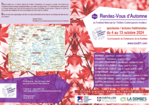 Créé en 2020, le Rendez-vous d’Automne du Festival National de Théâtre Contemporain Amateur de la Dombes, revient cette année du 4 au 13 octobre dans 9 communes de notre territoire avec des lieux et des formats originaux.