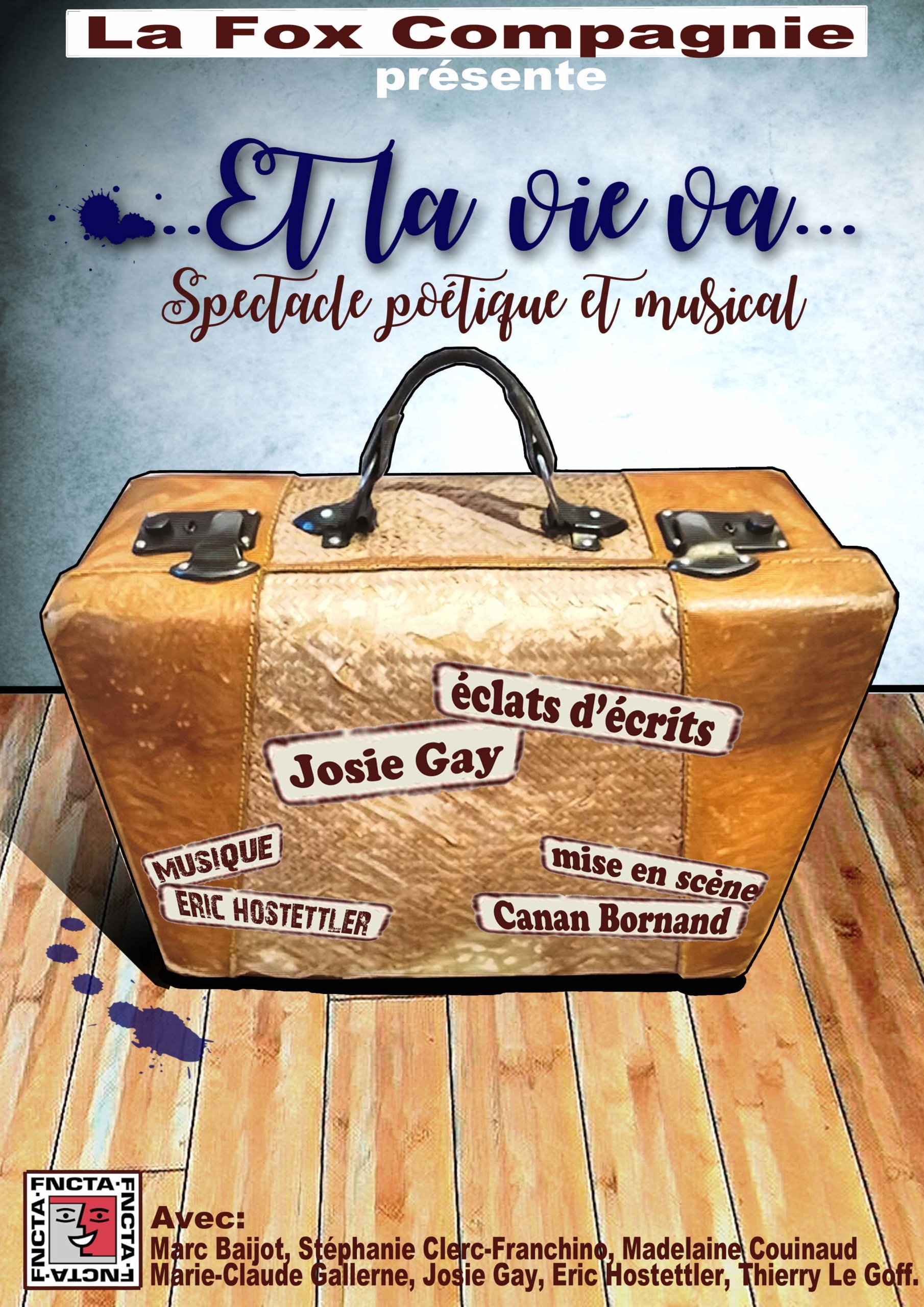 Six comédiens se piquent de curiosité pour une valise oubliée dans les coulisses d’un théâtre. Surpris de leur découverte, ils prennent aux mots ce qu’elle leur livre. Et les voilà beaux parleurs, chanteurs, danseurs, invitant le public à une fantasque balade poétique, inspirée de la plume de Josie Gay.