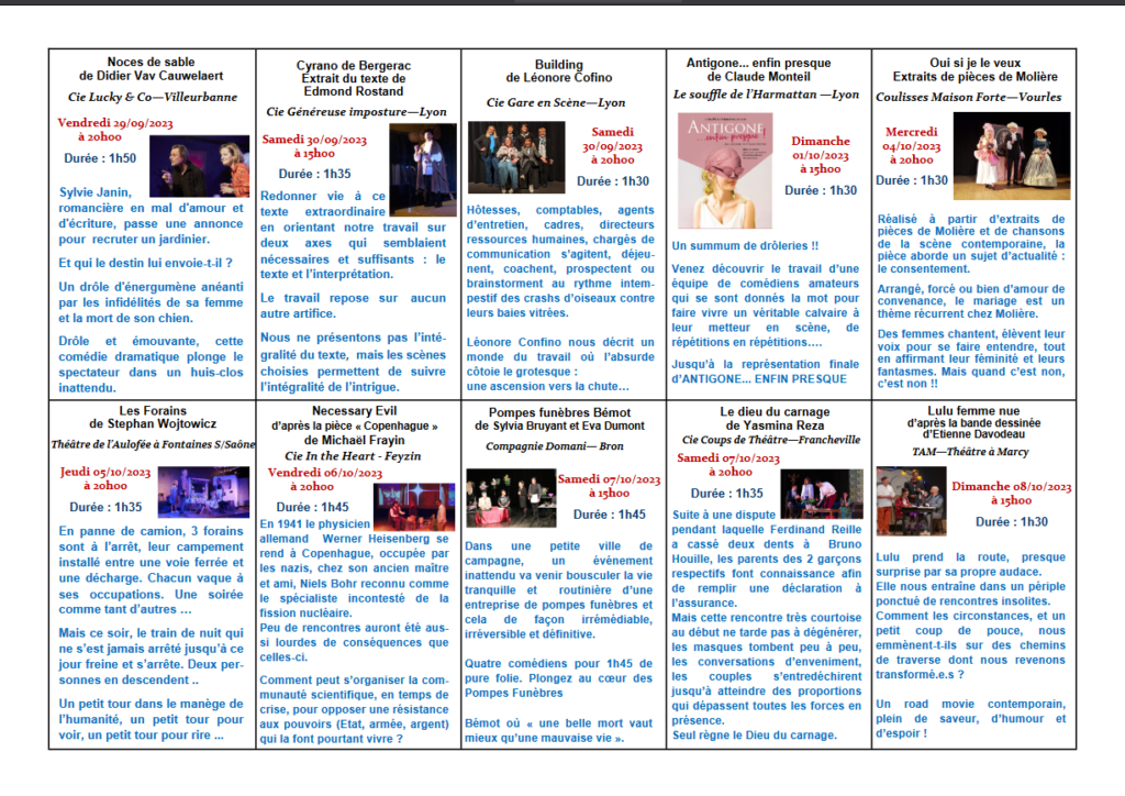 Festival Départemental de Théâtre Amateur de Lyon du 29 sept. au 8 octobre 2023