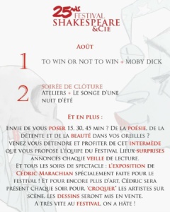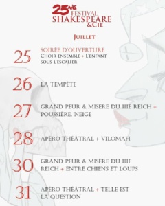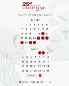 « Tous les Évènements Cet évènement est passé FESTIVAL SHAKESPEARE & CIE 27 juillet 2024 à 8 h 00 min - 3 août 2024 à 17 h 00 min « “BURLINGUE” de Gérard Levoyer // Théâtre Séjour Théâtre Ados au Festival Shakespeare – Tournon (07) » Par Christina Juhl (Ardèche)FESTIVAL SHAKESPEARE & CIE27 juillet 2024 à 8 h 00 min - 3 août 2024 à 17 h 00 min - Tournon-sur-Rhône Ajouter au calendrier Google Agenda iCalendar Outlook 365 Outlook Live Tout ce qu'il faut savoir Détails Début : 27 juillet 2024 à 8 h 00 min Fin : 3 août 2024 à 17 h 00 min Type d'évènement : Festivals et Rencontres Évènement Tags:Festival Shakespeare, Festival Shakespeare & Cie, Tournon-sur-Rhône Organisateur Troupe : THEATRE DU SYCOMORE TOURNON-SUR-RHONE 7300https://www.theatredusycomore.frResponsable de la troupe :Mme MARION CURTAUDcontact@theatredusycomore.fr Other Type d'évènement Festivals et Rencontres Lieu Lieu : Tournon-sur-Rhône France + Google Map Related Évènements Parcours Shakespeare – Ados 8 janvier 2026 à 20 h 00 min - 13 septembre 2026 à 19 h 00 min Le Cabaret des Bretelles à Bascules 15 janvier 2026 à 20 h 00 min - 22 h 00 min LA FERME HANTÉE – LES PIQUEBERLES 7 février 2026 à 18 h 00 min - 20 h 00 min