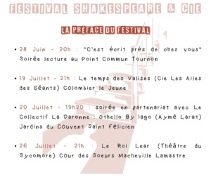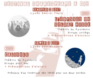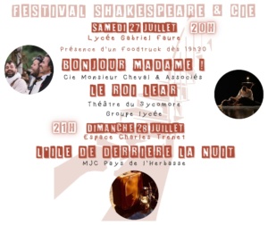 « Tous les Évènements Cet évènement est passé FESTIVAL SHAKESPEARE & CIE 27 juillet 2024 à 8 h 00 min - 3 août 2024 à 17 h 00 min « “BURLINGUE” de Gérard Levoyer // Théâtre Séjour Théâtre Ados au Festival Shakespeare – Tournon (07) » Par Christina Juhl (Ardèche)FESTIVAL SHAKESPEARE & CIE27 juillet 2024 à 8 h 00 min - 3 août 2024 à 17 h 00 min - Tournon-sur-Rhône Ajouter au calendrier Google Agenda iCalendar Outlook 365 Outlook Live Tout ce qu'il faut savoir Détails Début : 27 juillet 2024 à 8 h 00 min Fin : 3 août 2024 à 17 h 00 min Type d'évènement : Festivals et Rencontres Évènement Tags:Festival Shakespeare & Cie, Festival Shkespeare, Tournon-sur-Rhône Organisateur Troupe : THEATRE DU SYCOMORE TOURNON-SUR-RHONE 7300https://www.theatredusycomore.frResponsable de la troupe :Mme MARION CURTAUDcontact@theatredusycomore.fr Other Type d'évènement Festivals et Rencontres Lieu Lieu : Tournon-sur-Rhône France + Google Map Related Évènements Parcours Shakespeare – Ados 8 janvier 2026 à 20 h 00 min - 13 septembre 2026 à 19 h 00 min Le Cabaret des Bretelles à Bascules 15 janvier 2026 à 20 h 00 min - 22 h 00 min LA FERME HANTÉE – LES PIQUEBERLES 7 février 2026 à 18 h 00 min - 20 h 00 min