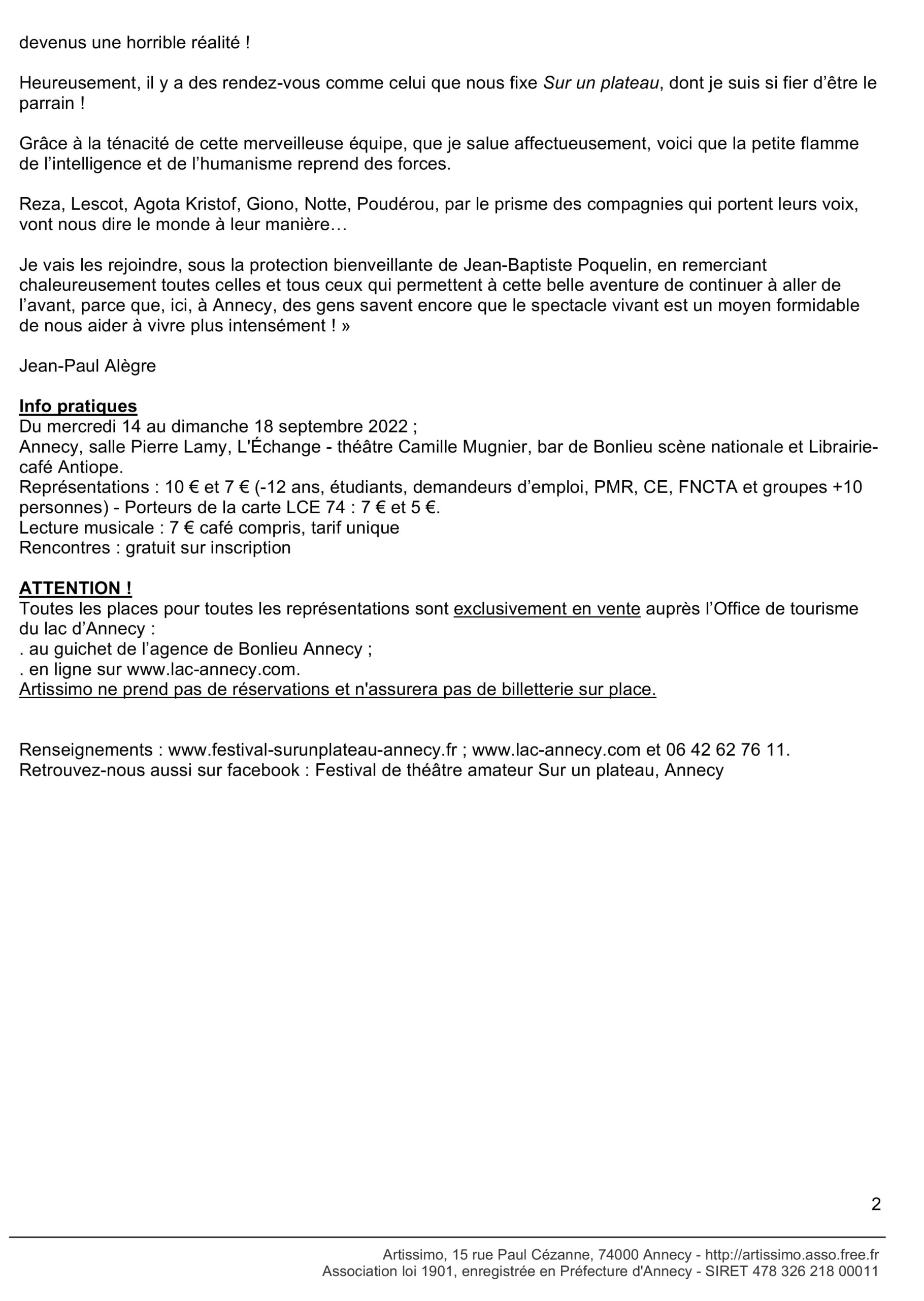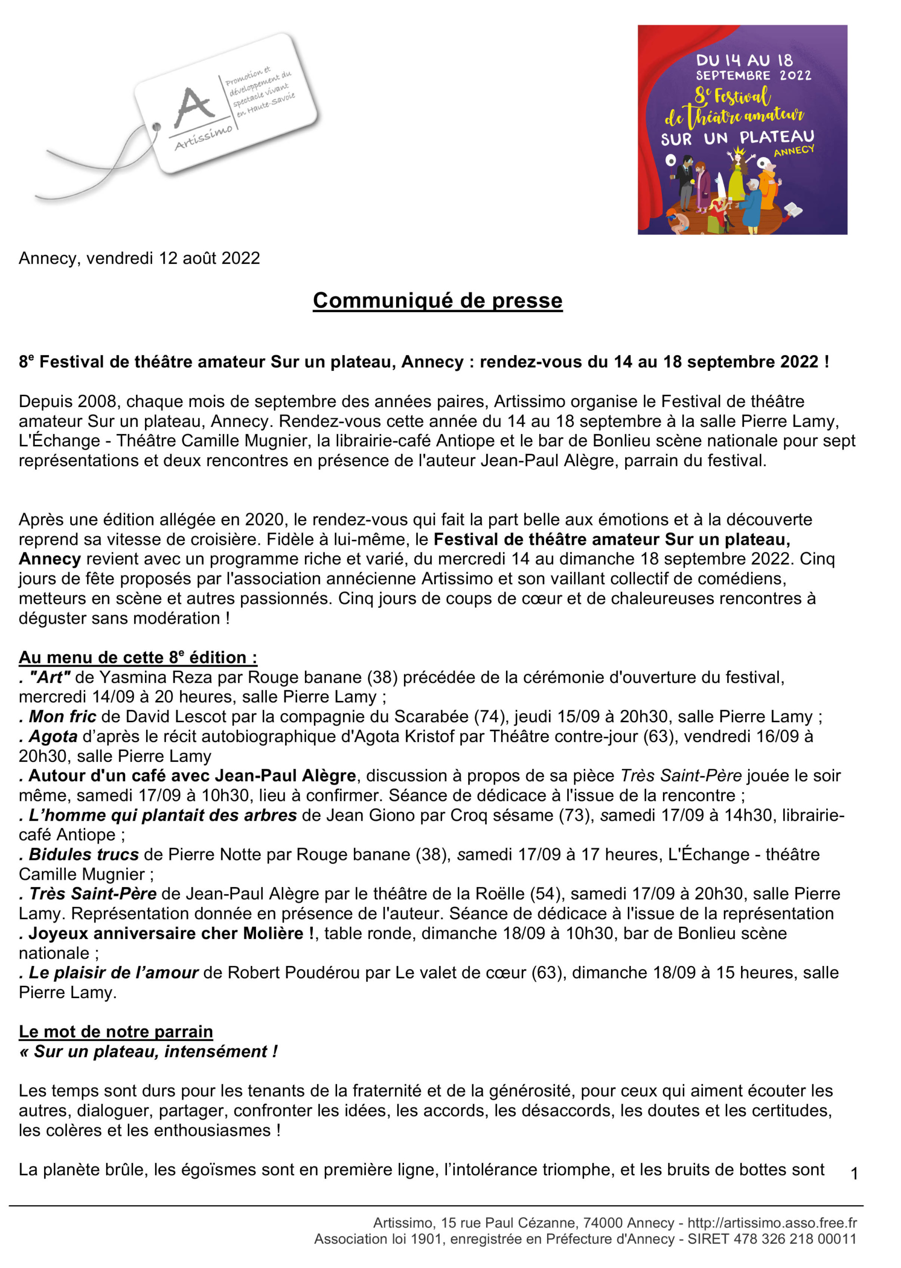 8e Festival de théâtre amateur – Sur un plateau – Annecy