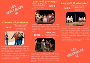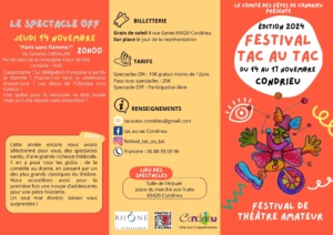 « Tous les Évènements Cet évènement est passé FESTIVAL TAC AU TAC 14 novembre 2024 à 20 h 00 min - 17 novembre 2024 à 22 h 30 min « “Le Retour de Richard 3 par le train de 9h24” Lieu : Espace Schoelcher, SEYSSINS Work-Work-Work (Tra-va-yer) » Par Christina Juhl (Loire)FESTIVAL TAC AU TAC14 novembre 2024 à 20 h 00 min - 17 novembre 2024 à 22 h 30 min - Condrieu Ajouter au calendrier Google Agenda iCalendar Outlook 365 Outlook Live Tout ce qu'il faut savoir Détails Début : 14 novembre 2024 à 20 h 00 min Fin : 17 novembre 2024 à 22 h 30 min Type d'évènement : Festivals et Rencontres Évènement Tags:Condrieu, Festival, Tac au Tac Lieu Lieu : Condrieu 69420, + Google Map Other Type d'évènement Festivals et Rencontres Related Évènements Parcours Shakespeare – Ados 8 janvier 2026 à 20 h 00 min - 13 septembre 2026 à 19 h 00 min 4e festival Barba’Trac de théâtre amateur 30 janvier 2026 à 17 h 00 min - 1 février 2026 à 21 h 00 min Dynamite Camping de Vivien Lheraux 13 février 2026 à 0 h 00 min - 22 février 2026 à 0 h 00 min