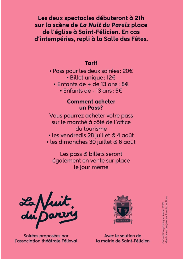 Pass pour les deux soirées : 20 € – enfant au dessus de 13 ans : 8 €