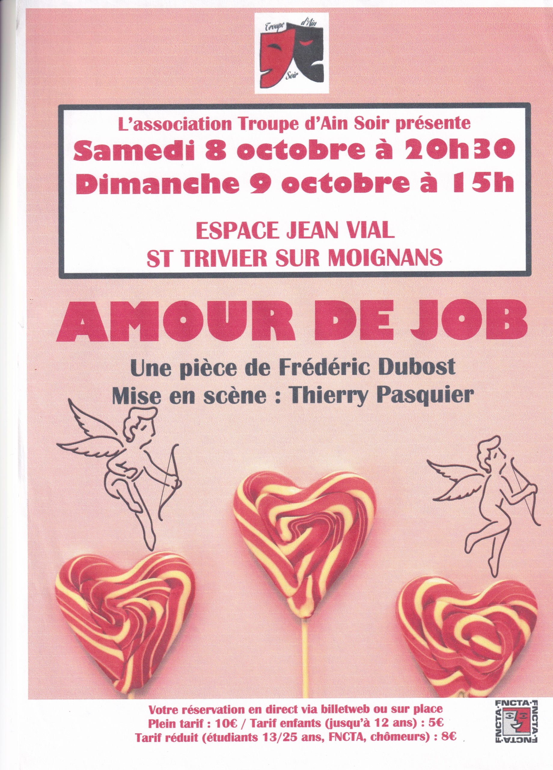 « Amour de Job » est une création de Frédéric Dubost. Depuis le début des années 2000, ce passionné de théâtre, acteur et metteur en scène, a écrit plus de 20 pièces. Son aptitude à donner aux acteurs un champ d’interprétation libre saura transporter aussi bien les jeunes que les plus anciens.