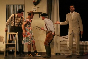 Adaptation de l’œuvre de Molière : un étranger hypocrite et faux dévot, Tartuffe, vient troubler et désunir une famille en s’emparant de l’esprit du maître de maison. La famille de ce dernier qui, elle, voit clair dans le jeu de Tartuffe, s’emploie à lui ouvrir les yeux sur le vrai visage de l’imposteur…Comédie revisitée sur un rythme enlevé : alexandrins, musique et jeux s’articulent pour mettre en exergue les deux thèmes principaus : l’hypocrisie des hommes et la fausse dévotion.