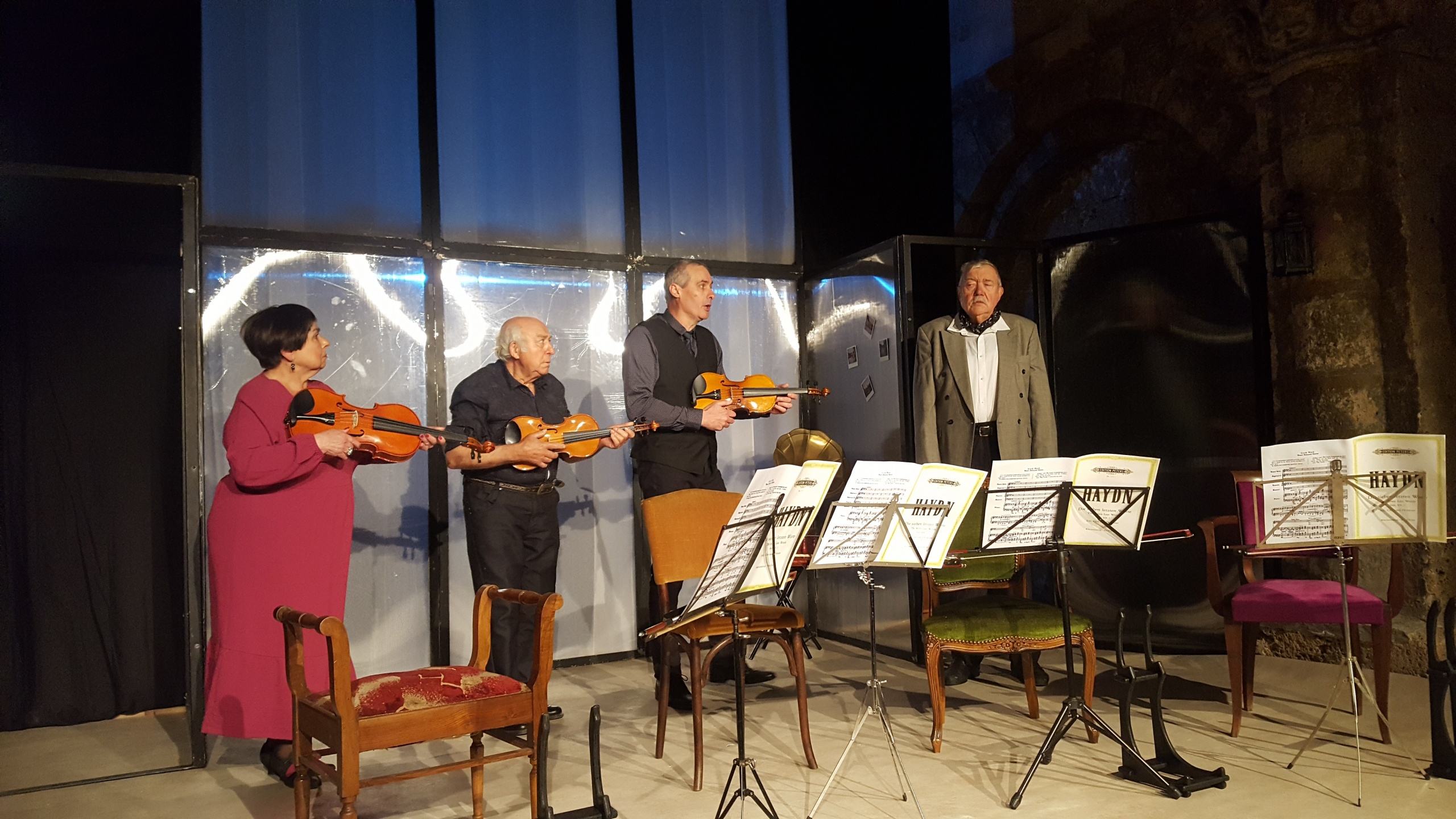 Tania Souslova , célèbre cantatrice devenue sourde à la suite d’un accident, invite le Quatuor Conrad à venir répéter dans son chalet de montagne. Isolés du reste du monde par d’abondantes chutes de neige, les quatre musiciens se trouvent confrontés à un double silence: celui de la vieille Souslova qui depuis l’anéantissement des sa carrière, refuse de parler, et le silence des neiges qui étend son règne absolu autour d’eux…Nouvelle création anniversaire de la Troupes des Gourlus, qui propose pour fêter ses 40 ans d’existence un huis clos glacial dans une langue poétique et exigeante. Un spectacle bercé par la musique enivrante d’Haynd.