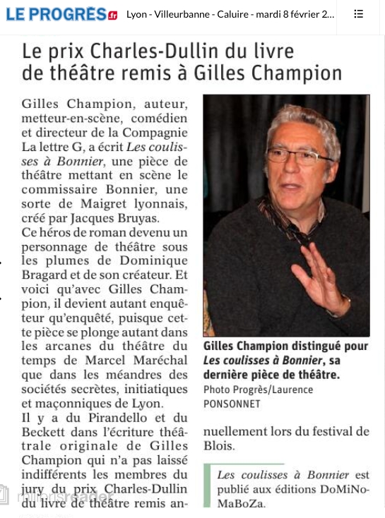 Un vieil acteur lyonnais est retrouvé mort dans le cinéma FOURMI BELLECOUR, assis à une place de spectateur, un suicide apparemment, à la main un article du PROGRES relatant le décès de MARCEL MARECHAL ce 12 juin 2020.