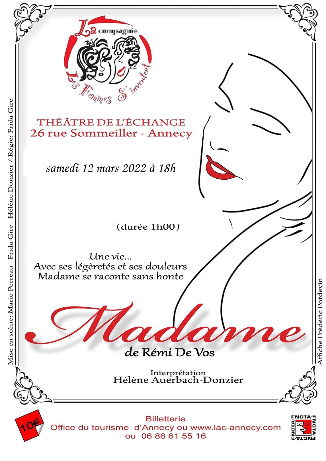 A 18h, La Cie Les Femmes S’Inventent, d’Annecy, jouent MADAME :