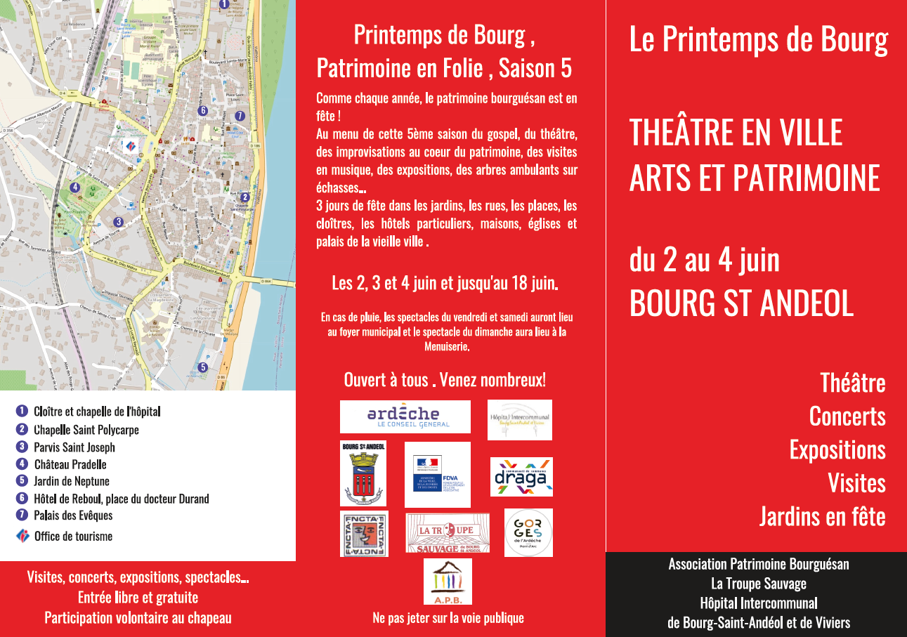 Saison 5 ! du 2 juin au 4 juin cette année la Troupe Sauvage et l’Association Patrimoine bourguésan proposent une nouvelle fois un week-end de fête, de musique, de théâtre, de jeux et de danse au cœur du vieux Bourg.
