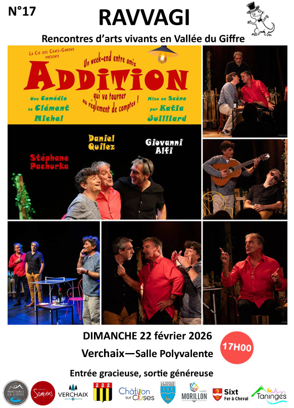 Chargement de la vue. Recherche et navigation de vues Évènements Recherche Saisir mot-clé. Rechercher Évènements par mot-clé. Chercher Cacher les filtres Navigation de vues Évènement Photo Liste Mois Photo Aujourd'hui 22/02/2026 22 février 2026 - 05/03/2026 5 mars 2026 Select date. Filtres La modification de l'une des entrées du formulaire entraînera l'actualisation de la liste des événements avec les résultats filtrés. Terminé Effacer Mots-clés: Ouvrir les filtres Fermer les filtres Mots-clés Départements: Ouvrir les filtres Fermer les filtres Départements Commune: Ouvrir les filtres Fermer les filtres Commune Catégories: Ouvrir les filtres Fermer les filtres Catégories Fév 22 17 h 00 min - 18 h 40 min Addition Fév 25 20 h 30 min - 22 h 00 min Event Series Dialogues d’homos sapiens 15€ Fév 26 20 h 30 min - 22 h 00 min Event Series Dialogues d’homos sapiens 15€ Fév 28 28 février 2026 à 10 h 00 min - 1 mars 2026 à 16 h 00 min CRÉATION LUMIÈRE POUR LE SPECTACLE 60€ Fév 28 18 h 00 min - 19 h 00 min L’homme qui plantait des arbres. De Jean Giono Free Fév 28 20 h 30 min - 22 h 30 min Event Series Embarquement (pas) immédiat – Théâtre les Baladins 4€ à 8€ Mar 1 15 h 00 min - 17 h 00 min LA FERME HANTÉE – LES PIQUEBERLES Mar 1 15 h 00 min - 17 h 00 min Event Series Embarquement (pas) immédiat – Théâtre les Baladins 4€ à 8€ Mar 5 20 h 00 min - 21 h 40 min Addition, comédie (13 sélections Festival) 12€ à 15€ Previous Évènements Aujourd'hui Next Évènements S’abonner au calendrier Google Agenda iCalendar Outlook 365 Outlook Live Exporter le fichier .ics Exporter le fichier Outlook .ics