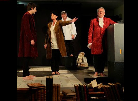 Dans la veine populaire de la comédie, 2 brèves pièces « L’amour médecin » de Molière et « La tête noire » de Lesage. Comédie, musique, costumes d’époque, danse, combat d’épée, cascades. Mariages contrariés, tromperies, masques, déguisements dans l’esprit de la commedia dell’arte et de la farce.