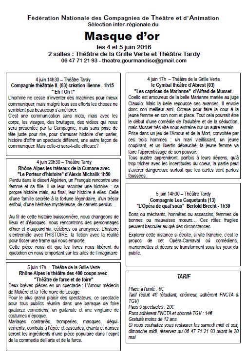 ° Voir le programme officiel au format pdf : Sélection Masque d’Or-Programme_Juin2016.