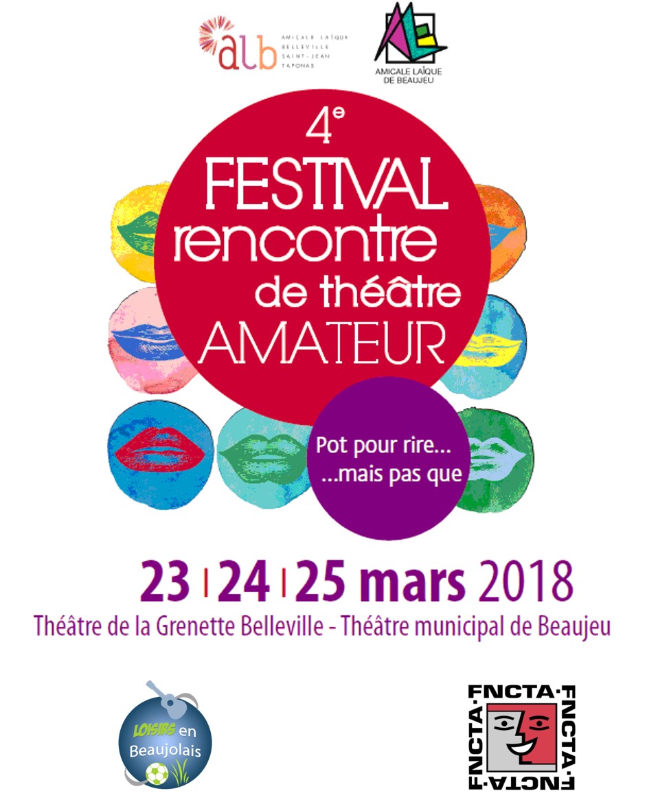 FESTIVAL BELLEVILLE & BEAUJEU 2018 afficheCe festival se place d’abord sous le signe la comédie, « mais pas que », ce qui veut dire que sont bienvenus des spectacles à l’humour grinçant ou décalé. Seront bienvenus encore les spectacles qui mêlent les arts et les genres y compris des spectacles de rue.