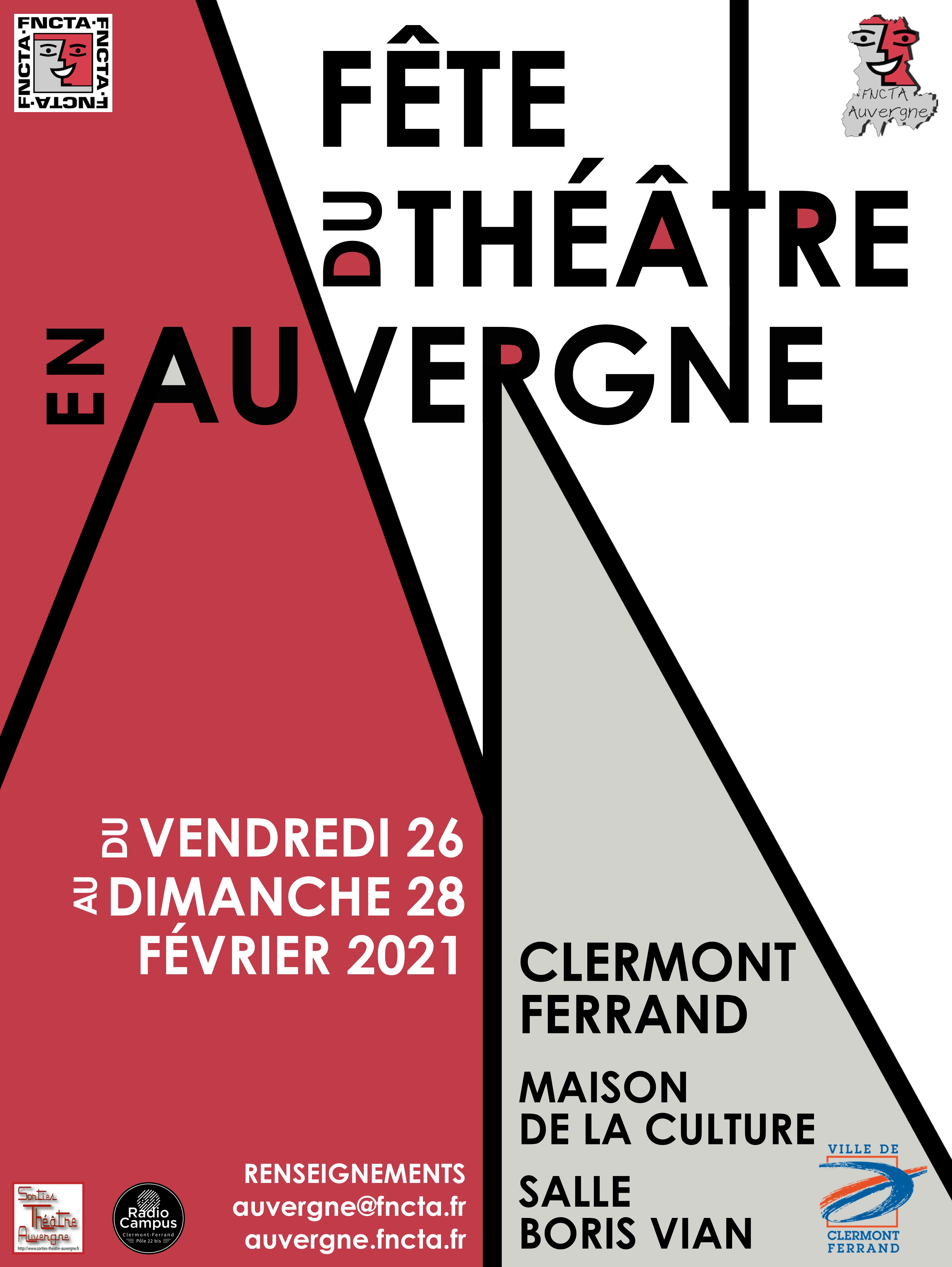 Les candidatures pour La Fête du Théâtre en Auvergne qui aura lieu à la Maison de la Culture de Clermont-Ferrand du 26 au 28 février 2021 sont ouvertes.