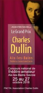 Le prochain Grand Prix Charles Dullin se déroulera du 25 au 27 octobre 2018 à Aix-les-Bains au théâtre du Casino Grand Cercle.
