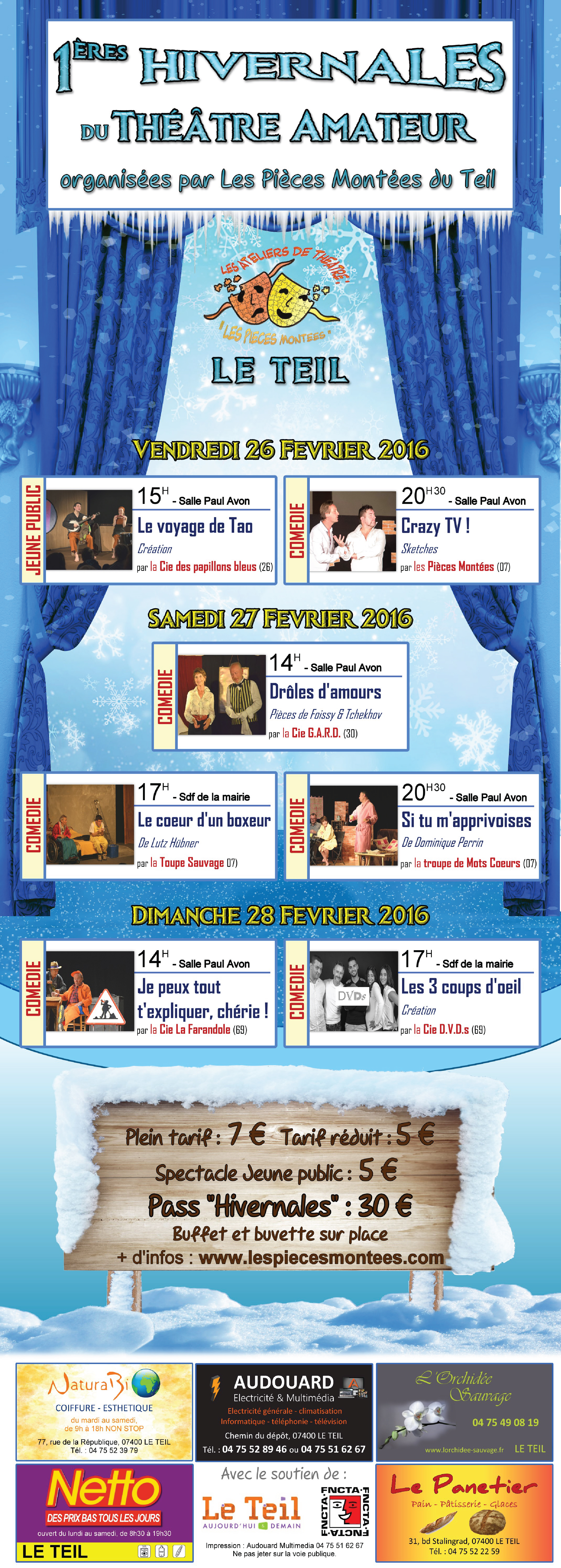 Les Hivernales du Théâtre amateur. Organisé par la Compagnie Les Pièces montées.