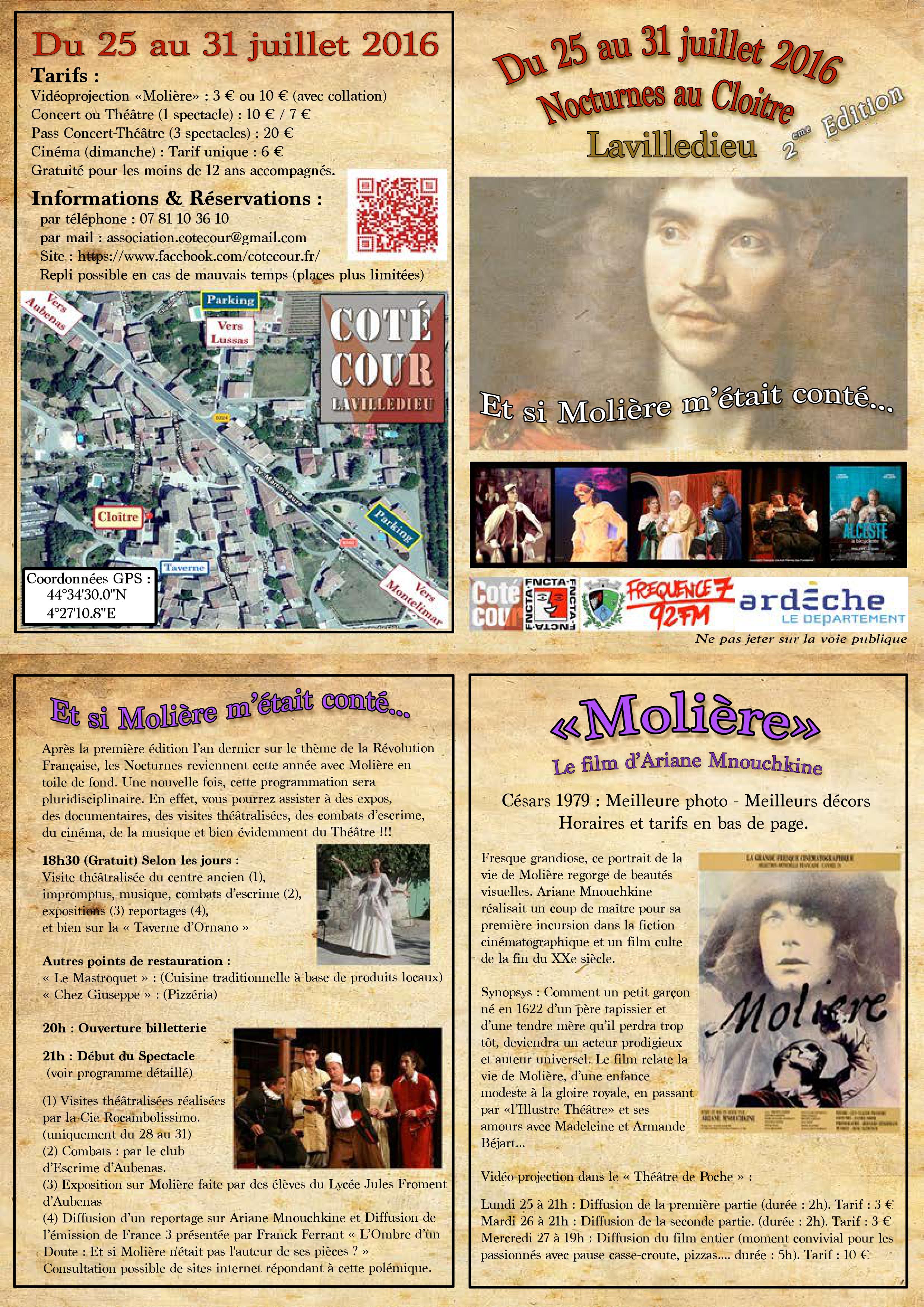 – Vidéo-projection de “Molière” : 3 € ou 10 € (avec collation)
