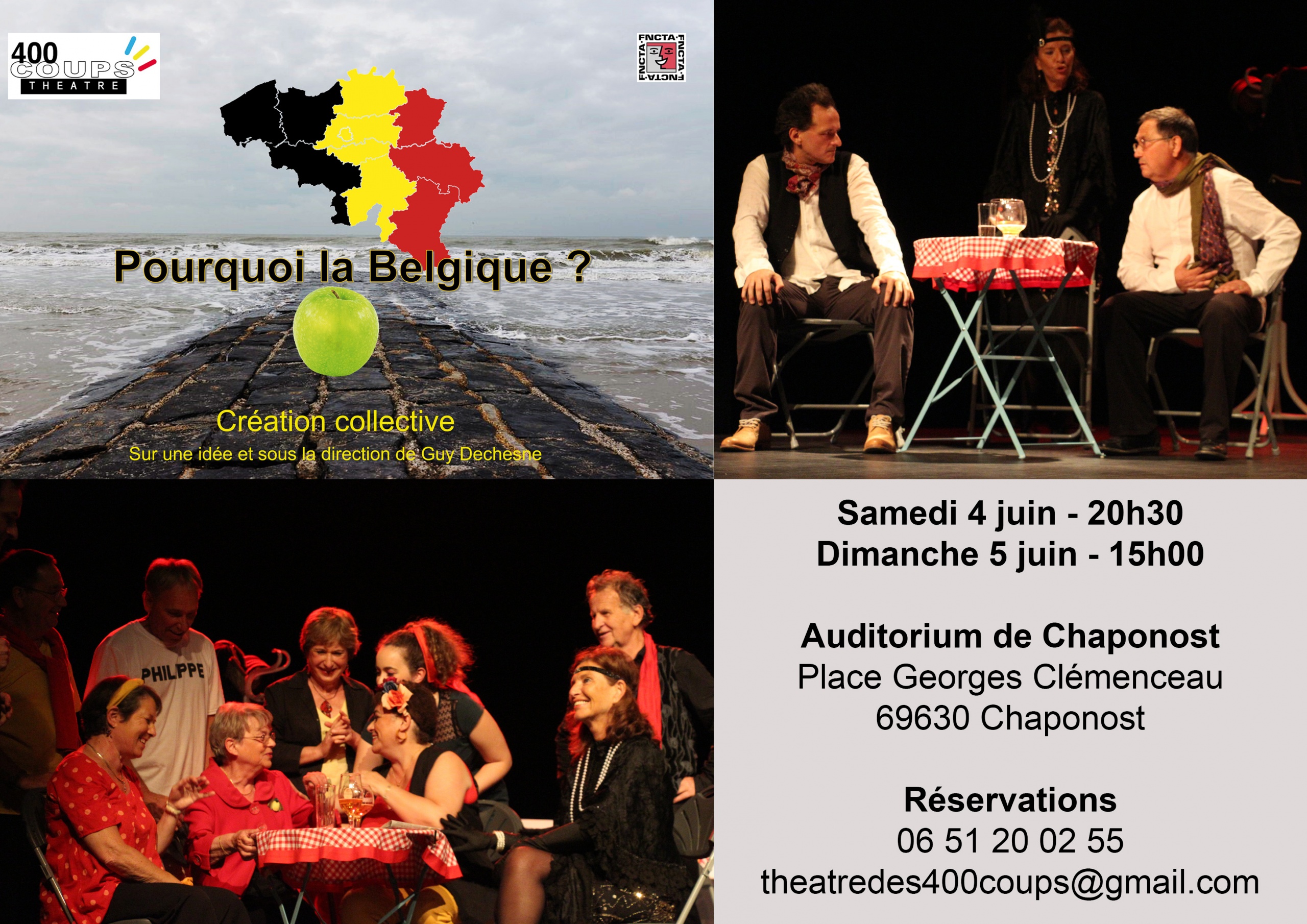 Création collective du Théâtre des 400 CoupsSur une idée et sous la direction de Guy DechesneUn spectacle avec comme seul fil conducteur la Belgique, sa géographie, son histoire, sa politique, sa culture, ses anecdotes… Avec…