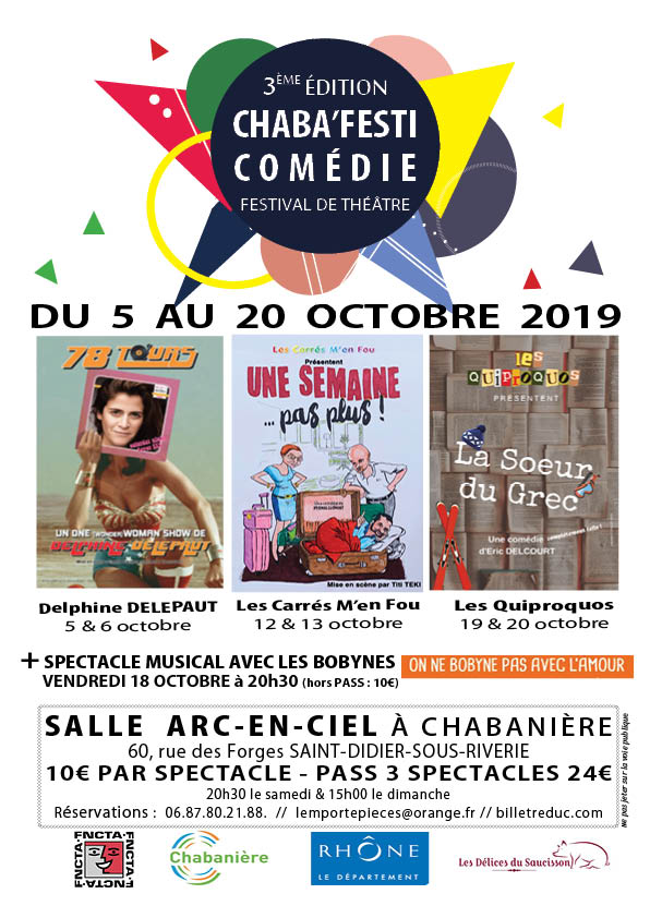 Voici donc les dates du troisième Chaba’FestiComédie : les 5-6, 12-13 & 19-20 octobre 2019