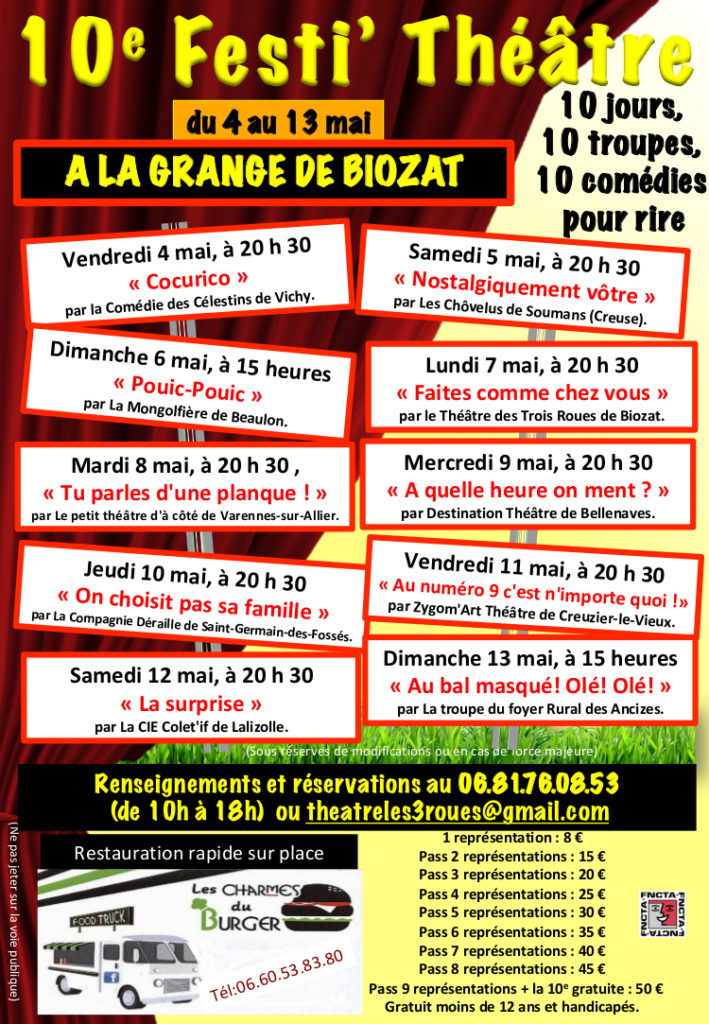 Renseignement et réservation : 06-81-76-08-53 (de 10h00 à 18h00) // theatreles3roues@gmail.com