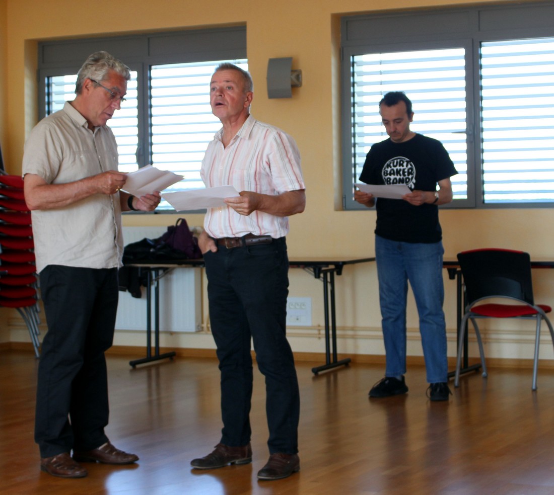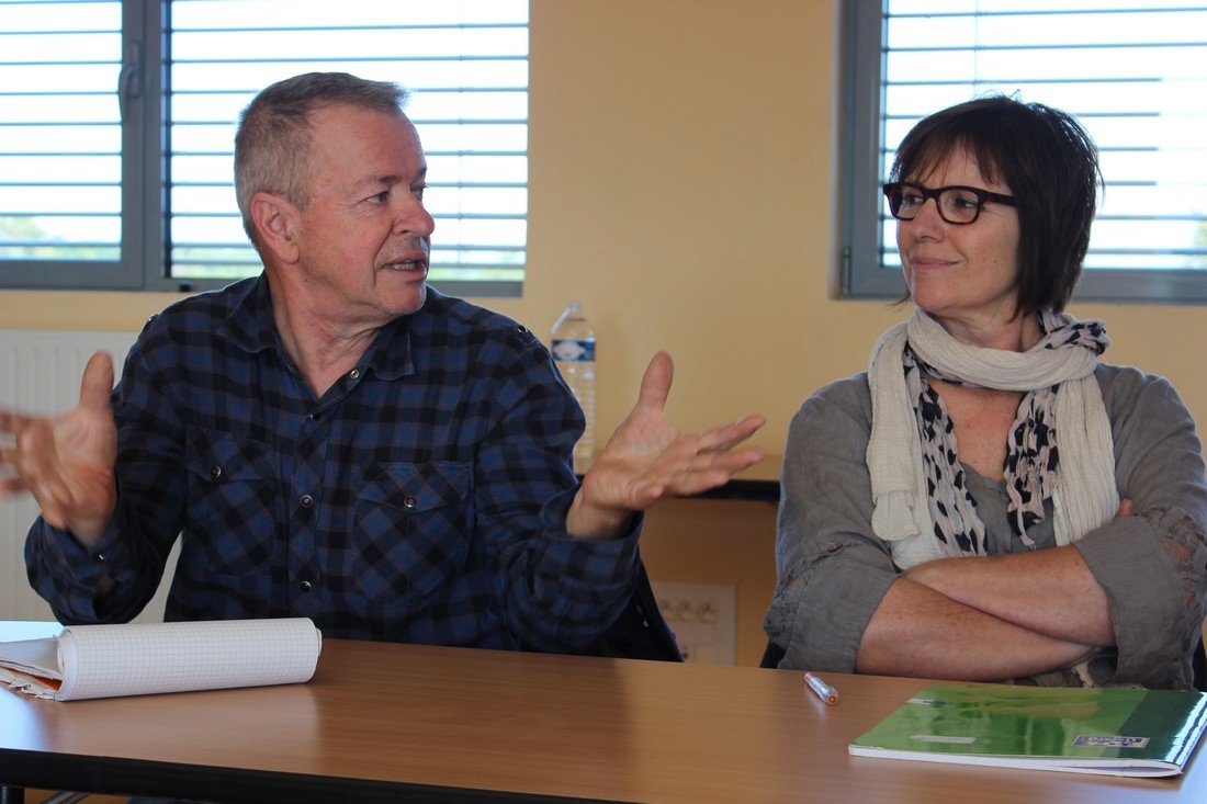 Jean-Pierre Siméon, auteur, (à gauche) animant son atelier
