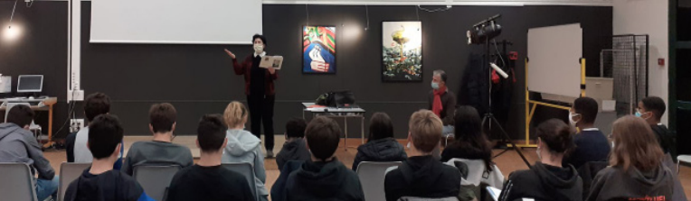 Mais, enfin, en novembre 2021, au Théâtre des Augustins à Montluel, notre spectacle, centré autour de Au nom des Oiseaux paru récemment chez Donjon Editions, a pu avoir lieu. Nous avons obtenu le soutien de la DILCRAH (Délégation Interministérielle à la Lutte Contre le Racisme, l’Antisémitisme et la Haine anti-LGBT). Parce que nous avons travaillé pour ce spectacle en lien étroit avec les professeurs de français et d’histoire du collège Emile Cizain de Montluel.