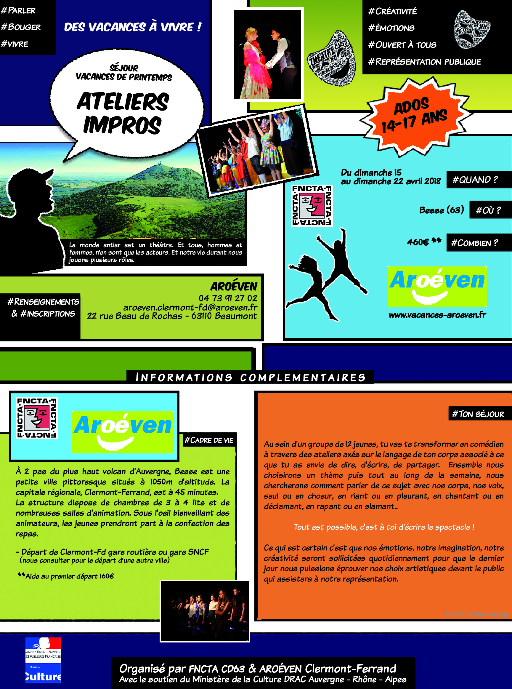 FNCTA CD63 en partenariat avec l’Aroéven Clermont organise un séjour pour jeunes de 14 à 17 ans pendant les vacances de Printemps de la zone A du 15 au 22 avril 2018.