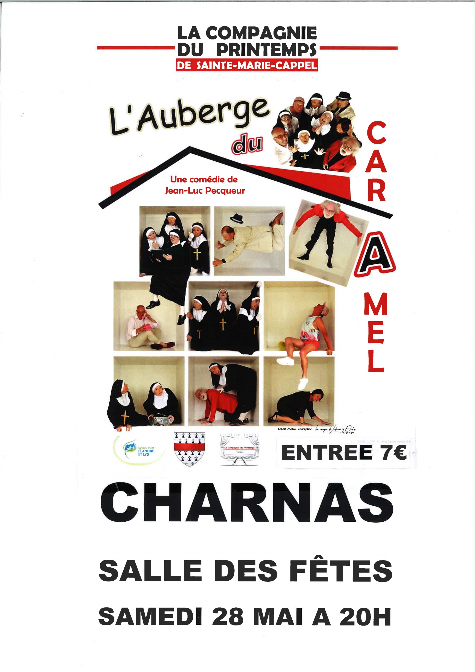 La Compagnie du Printemps de Sainte-Marie-de-Cappel (59) INVITÉE par La Charnaude présente L’Auberge du Caramel à la Salle des Fêtes de Charnas (07) le Samedi 28 mai à…