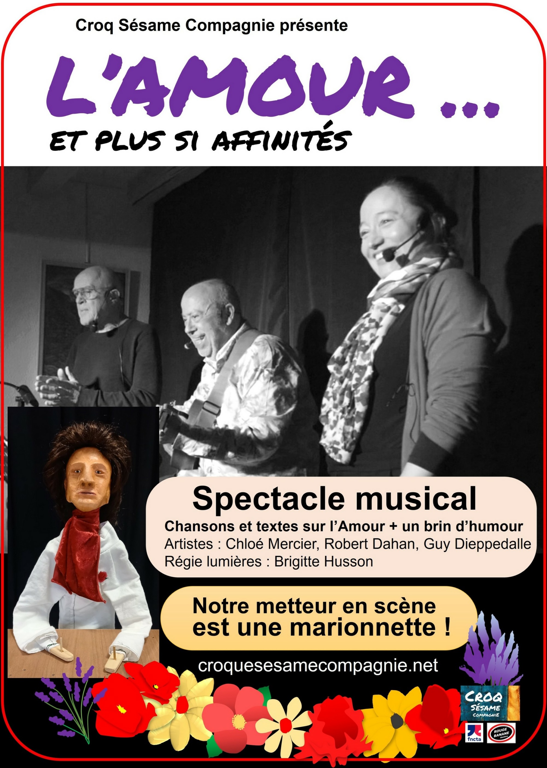 Notre nouveau spectacle musical autour de l’Amour, comme un bouquet de chansons et de textes. Et un brin d’humour. Mais, originalité : notre metteur en scène est une marionnette ! Notre metteur en scène est…