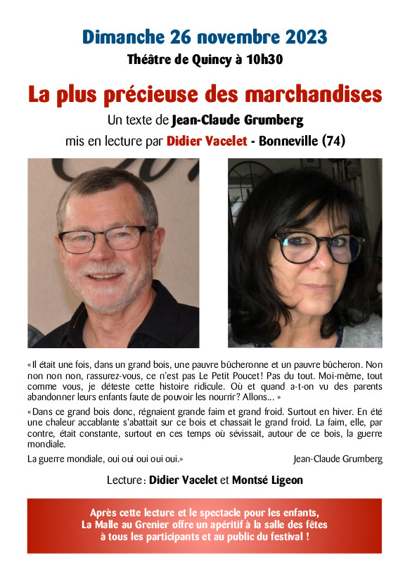 Les 24, 25 et 26 novembre dernier, à Massongy, s’est déroulé le festival Quincy soit-il, ayant le label Régional FNCTA URRA. À cette occasion, nous nous sommes entretenus avec Catherine Canovas et Jean-Marc Thiébaud, tous…