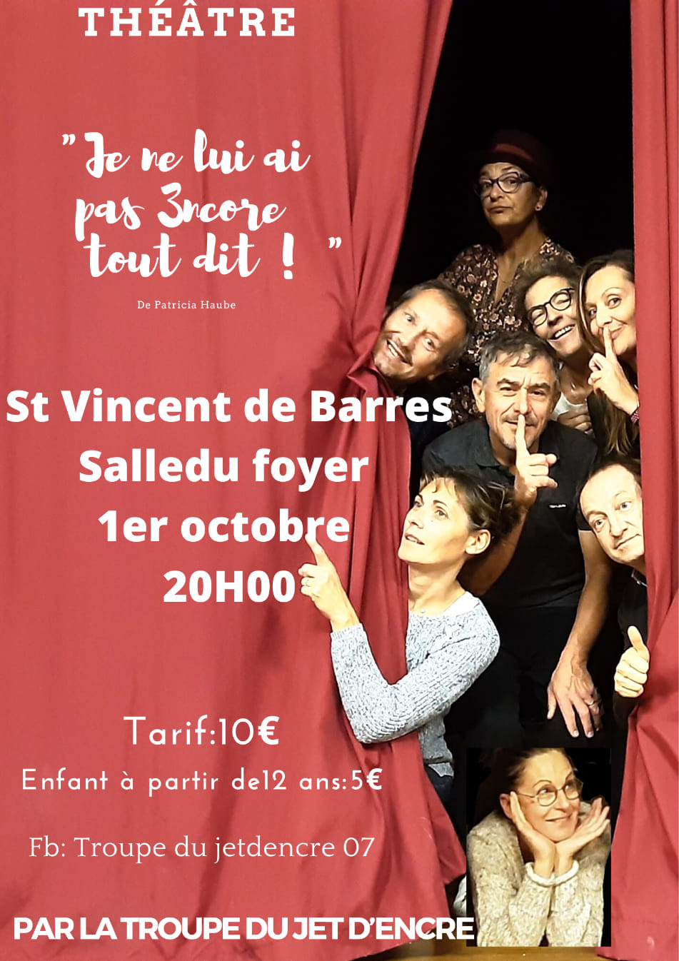 Je ne lui ai pas encore tout dit par la Troupe du Jet d’Encre Samedi 26 novembre à 20h à la Salle des Fêtes de Rochemaure Une comédie de Patricia Haubé Alex souhaite ouvrir avec…