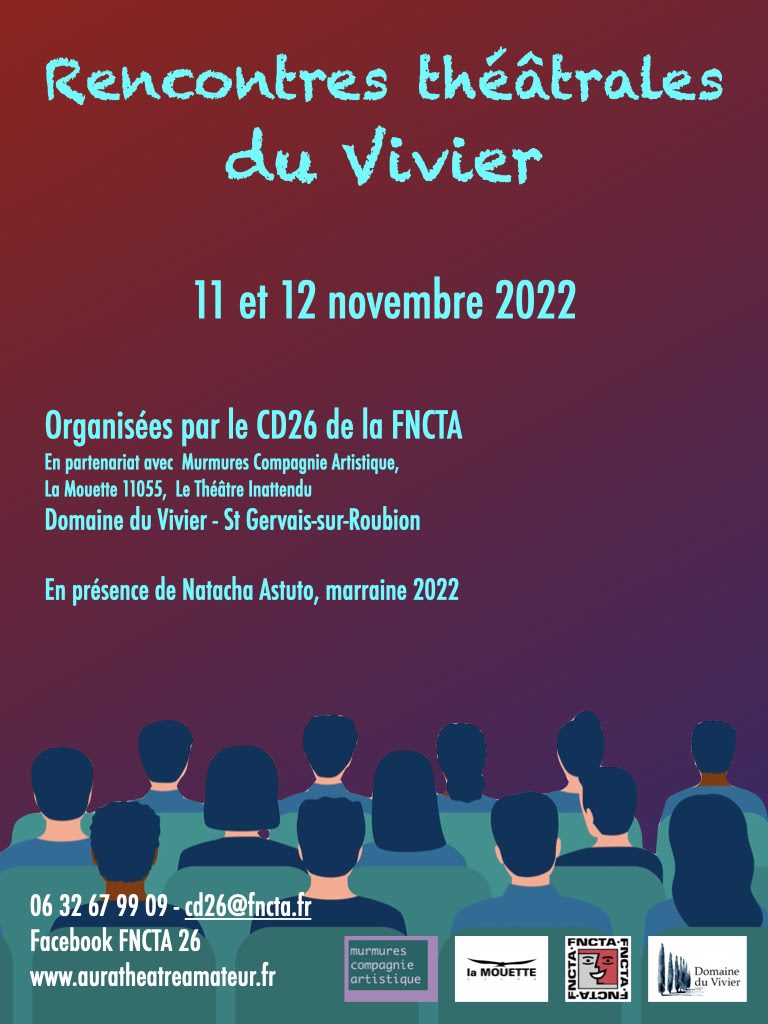 La première édition des Rencontres Théâtrales du Vivier, organisés par Murmures Compagnie Artistique et La Mouette 11055 au Domaine du Vivier Dates et lieu : Du 8 au 10 novembre 2019 Domaine du Vivier – 930,…