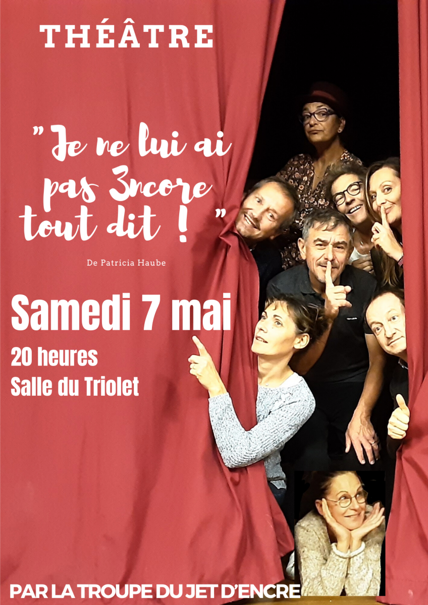 Je ne lui ai pas encore tout dit par la Troupe du Jet d’Encre Samedi 7 mai à 20h à la Salle du Triolet à Chomérac Une comédie de Patricia Haubé Alex souhaite ouvrir avec…